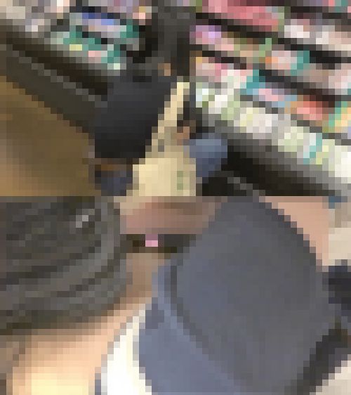 CDショップでお会いしたお若い女の子。隣に立ってみるとなんと素晴らしい巨乳の持ち主です。しゃがんだ体勢のおかげでブラが浮き上がってキレイな巨乳が丸見えです。