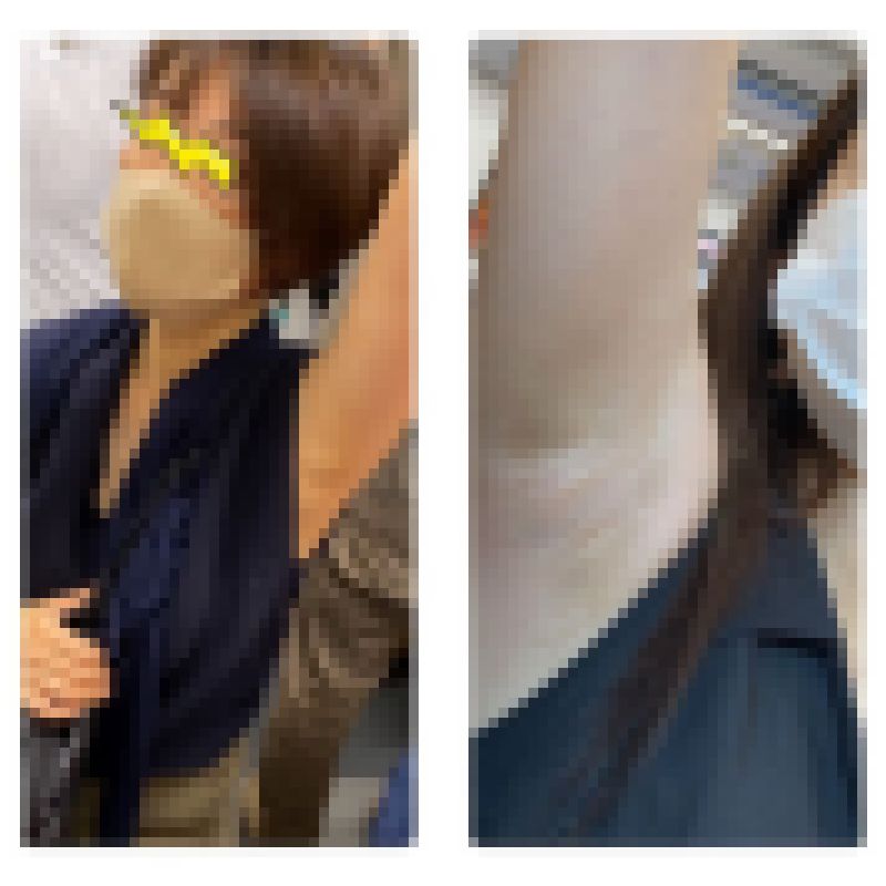 腋は夏限定で、なかなか拝むことができないレアな動画です。今回はかなり接近した2名の女子大生と人妻さんの綺麗な腋を見ることができます。タンクトップでつり革に掴んでくれているので、全開な脇を拝むことができます。