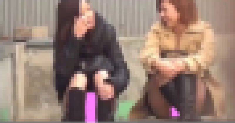 ① ニットワンピの二人組。大胆な大股開きはないもののつい見え隠れする白い布が魅惑です。